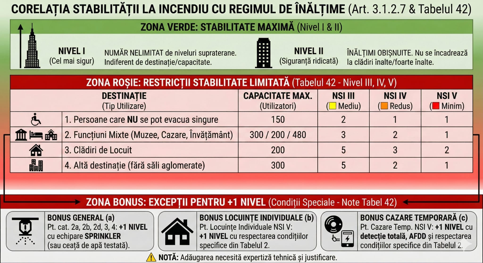 * Nivel II → permis doar pentru clădiri cu înălțimi obișnuite (nu pot deveni clădiri înalte/foarte înalte)
